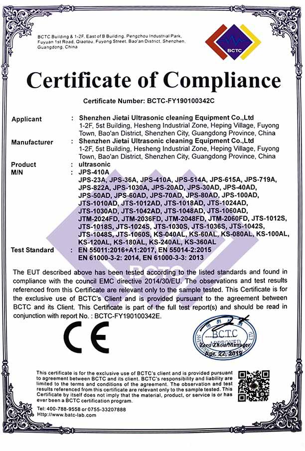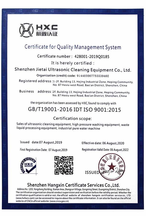 ? ? ? 公司全面實(shí)行嚴(yán)格的ISO9001:2008質(zhì)量體系管理,以創(chuàng)新著稱(chēng)而躋身行業(yè)前列,所開(kāi)發(fā)生產(chǎn)的各種超聲波清洗設(shè)備,先后通過(guò)CE、FCC、ROHS、等認(rèn)證,產(chǎn)品專(zhuān)利達(dá)50多項(xiàng),技術(shù)達(dá)國(guó)際同類(lèi)產(chǎn)品先進(jìn)水平。