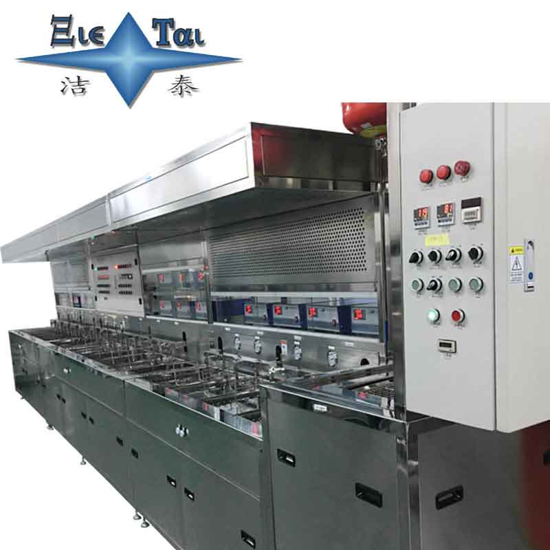 由多道超聲波洗凈槽、超聲波漂洗槽、慢拉干燥槽、過濾循環(huán)系統(tǒng)、工件上下?lián)u動機(jī)構(gòu)、電氣控制系統(tǒng)及純水供應(yīng)系統(tǒng)等組成。