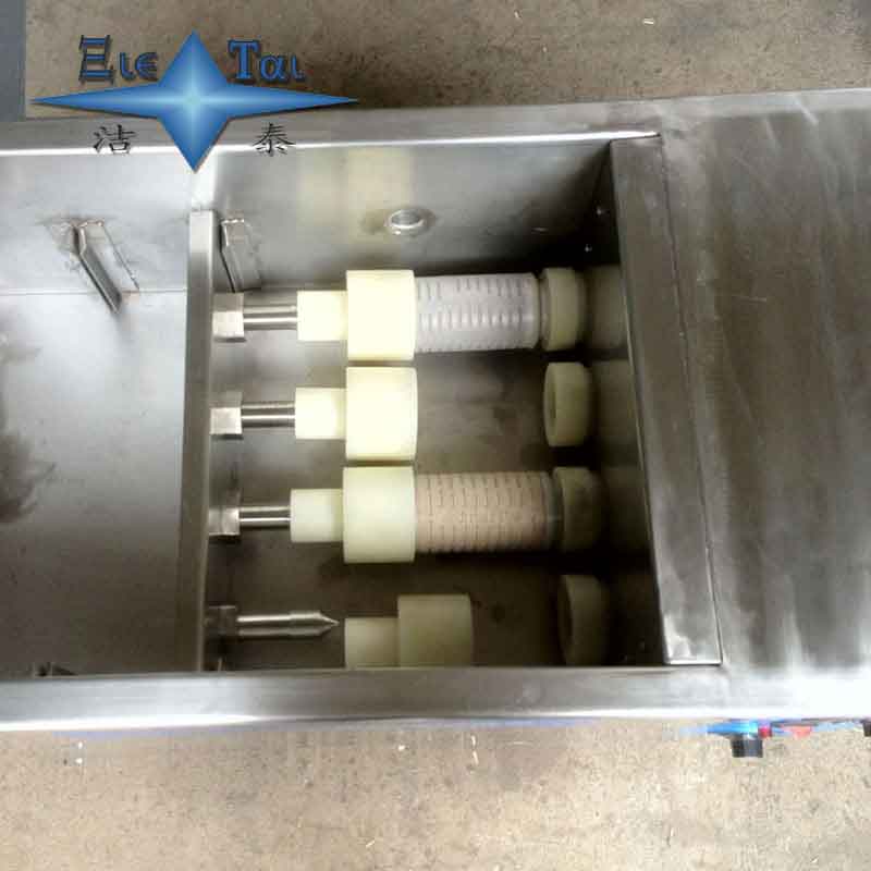 潔泰濾芯鈦棒超聲波清洗機,適用于制藥、化工等行業中的發酵、藥液、原料加工、水處理等工序所用濾芯、鈦棒的清洗。該產品的研制成功,徹底結束了濾芯、鈦棒不能清洗的歷史,可使濾芯、鈦棒反復使用數次,減少企業重復采購帶來的損失,為企業取得巨大的的經濟效益,是各大生產企業濾芯、鈦棒清洗的理想設備。