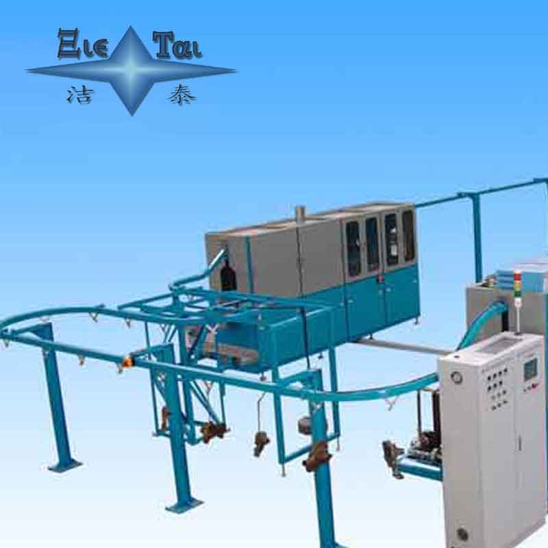 懸掛鏈?zhǔn)斤w輪輪轂超聲波、噴淋清洗烘干設(shè)備由懸掛輸送鏈條、驅(qū)動(dòng)裝置、張緊裝置、超聲波清洗、噴淋清洗、過水槽、切水系統(tǒng)、烘干系統(tǒng)、管路系統(tǒng)、過濾系統(tǒng)、自動(dòng)溫控裝置、總電氣控制、底盤和機(jī)架等部份組成.各槽體間加裝不銹鋼接水盤,避免汽車輪轂/飛輪在移動(dòng)過程中將水滴落地面。